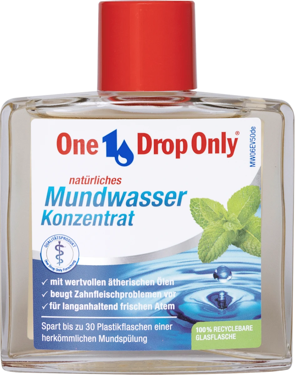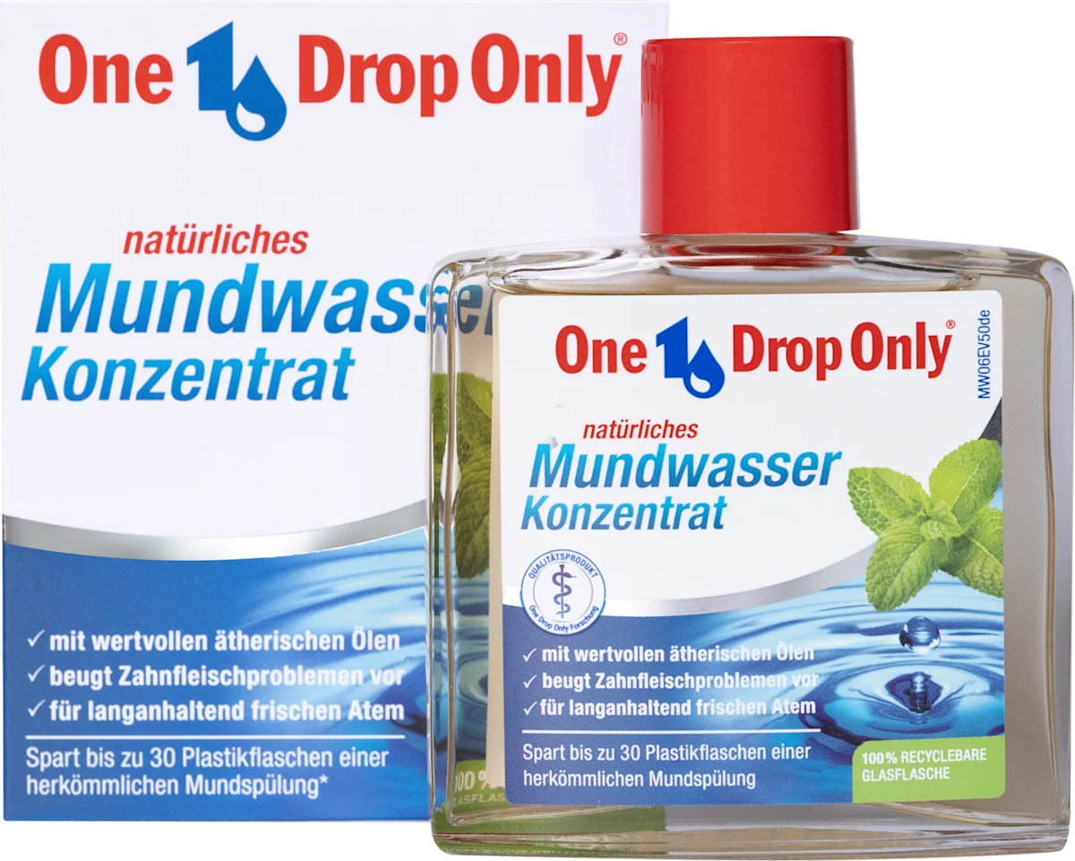 Het One Drop Only mondwater concentraat fluoridevrij 50 ml is een klassiek en hoogwaardig mondwaterconcentraat dat al meer dan 65 jaar deel uitmaakt van dagelijkse mondverzorging. Het bevat een combinatie van natuurlijke, antibacteriële etherische oliën — zoals pepermunt, clove (kruidnagel), tijm, salie en tea tree olie — die helpen de mondhygiëne te ondersteunen, tandvlees te versterken en ontstekingen en bloedingen van het tandvlees te verminderen. Door de geconcentreerde formule is het product zeer zuinig in gebruik en ideaal om te combineren met tandenpoetsen.