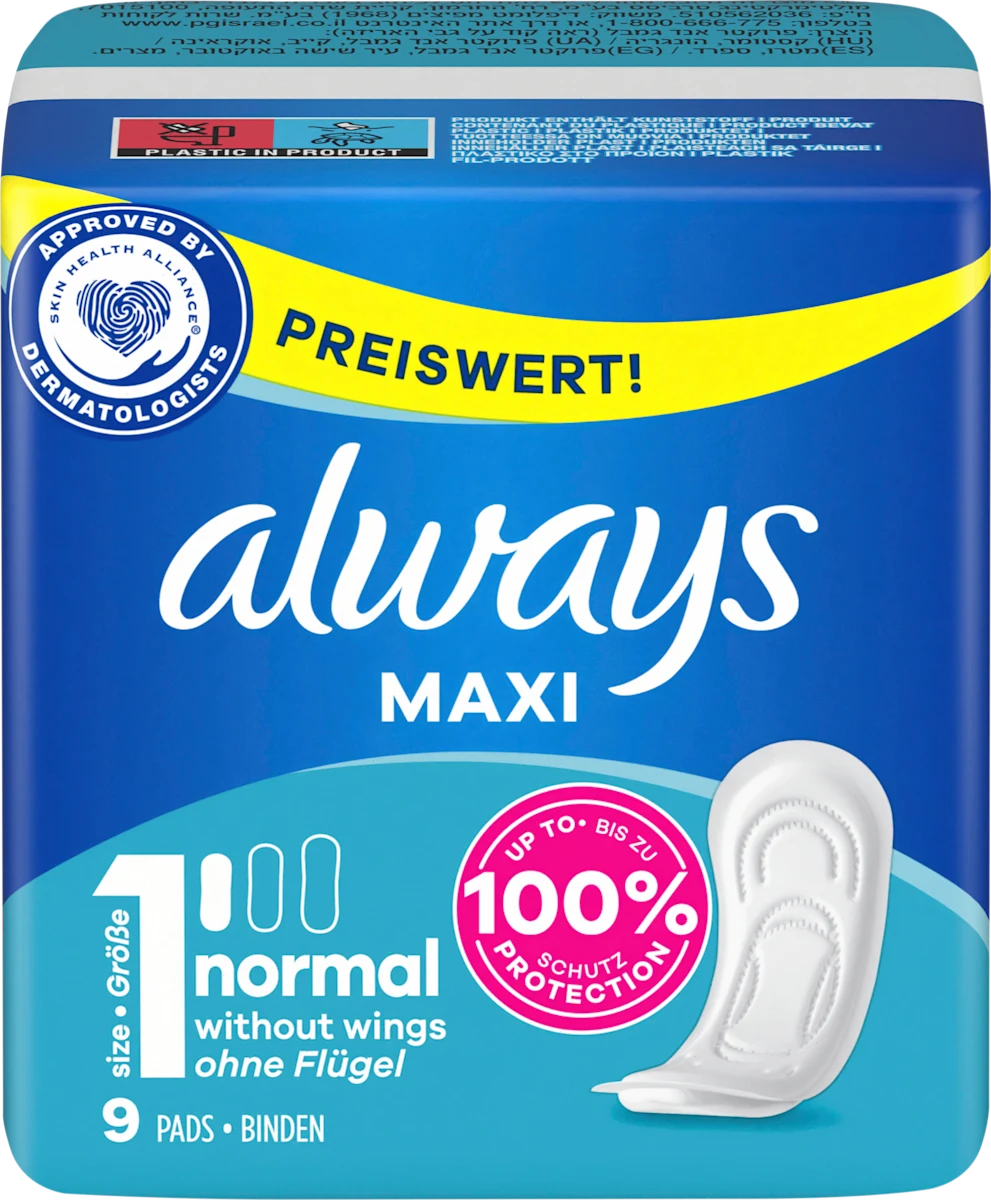 Always Maxi Binden Normal is geschikt voor lichte tot normale menstruatiedagen. Het biedt comfort en bescherming wanneer je die het meest nodig hebt.