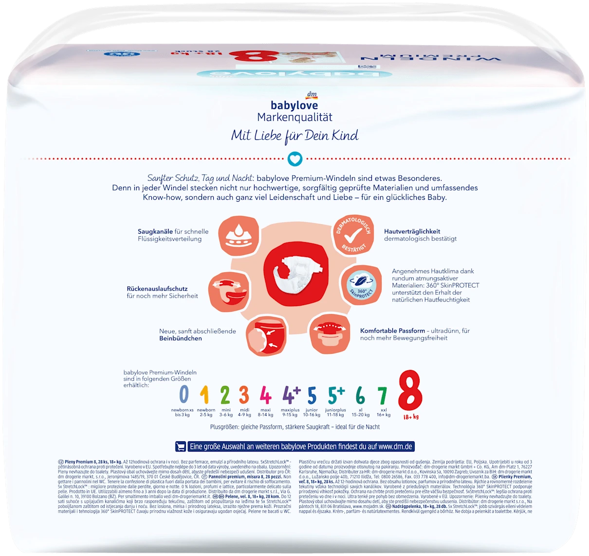 De Babylove luiers in maat 8 zijn speciaal ontworpen voor kinderen met een gewicht van 18 kg en meer. Deze hoogwaardige luiers bieden uitstekende bescherming en comfort, zodat je kindje vrij kan bewegen zonder zich zorgen te maken over lekkages.