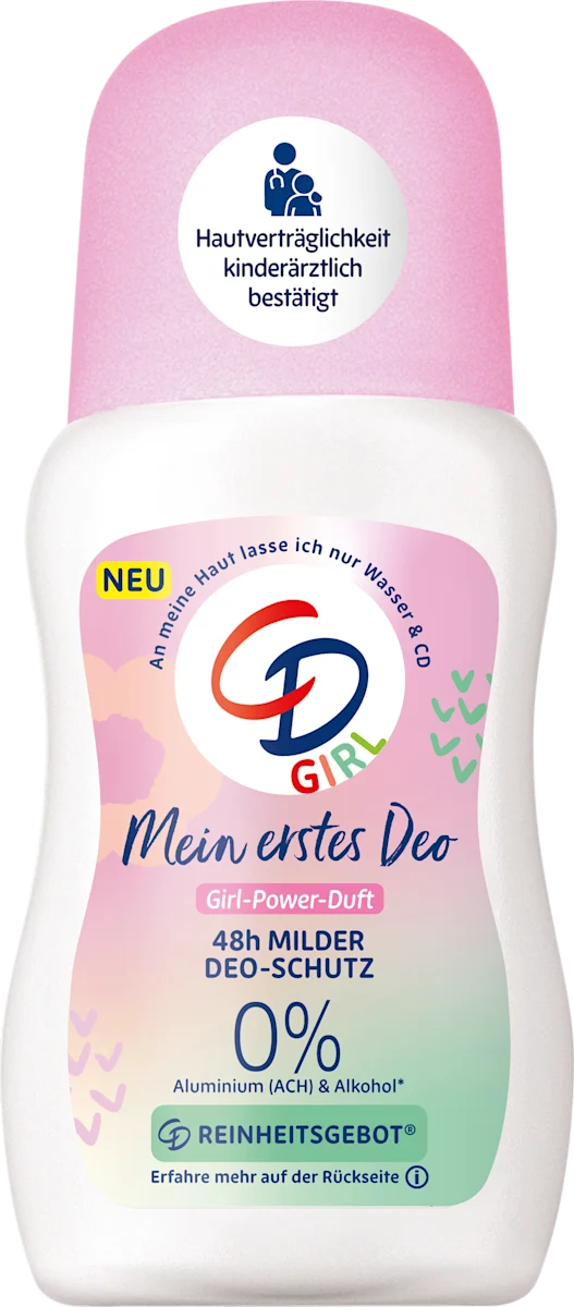 De CD Deo Roll‑On Meisjes “Mijn Eerste Deo” 50 ml is een speciaal ontwikkelde deodorant voor jonge meiden die hun eerste stapjes in lichaamsverzorging zetten. Deze formule met Bio‑Aloe‑vera–extract en Bio‑perzik‑extract biedt een zachte, verzorgende ervaring met een mild, frisser geurgevoel. De deodorant beschermt tot ca. 48 uur tegen ongewenste lichaamsgeur, terwijl de huid tegelijkertijd wordt verzorgd voor een comfortabel gevoel — ideaal voor gevoelige huidtypen en dagelijks gebruik. :contentReference[oaicite:0]{index=0}