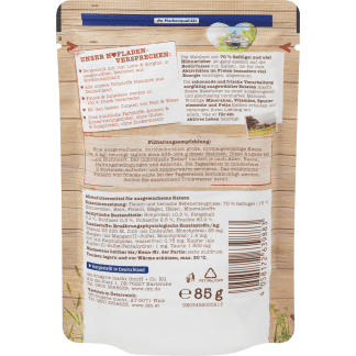 Dein Bestes natvoer bevat een mix van hoogwaardig vlees en belangrijke voedingsstoffen, zonder onnodige toevoegingen.