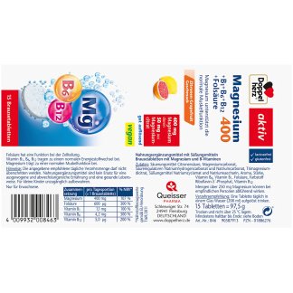 Doppelherz Magnesium 400 B Vitaminen bruistabletten combineren 400 milligram magnesium met belangrijke B vitaminen zoals B6 B12 en foliumzuur. Deze combinatie ondersteunt het energieniveau helpt bij vermoeidheid en draagt bij aan een goed functionerend zenuwstelsel. Dankzij de handige bruistabletten met frisse sinaasappelsmaak is dit supplement eenvoudig en snel in te nemen.