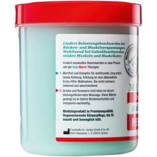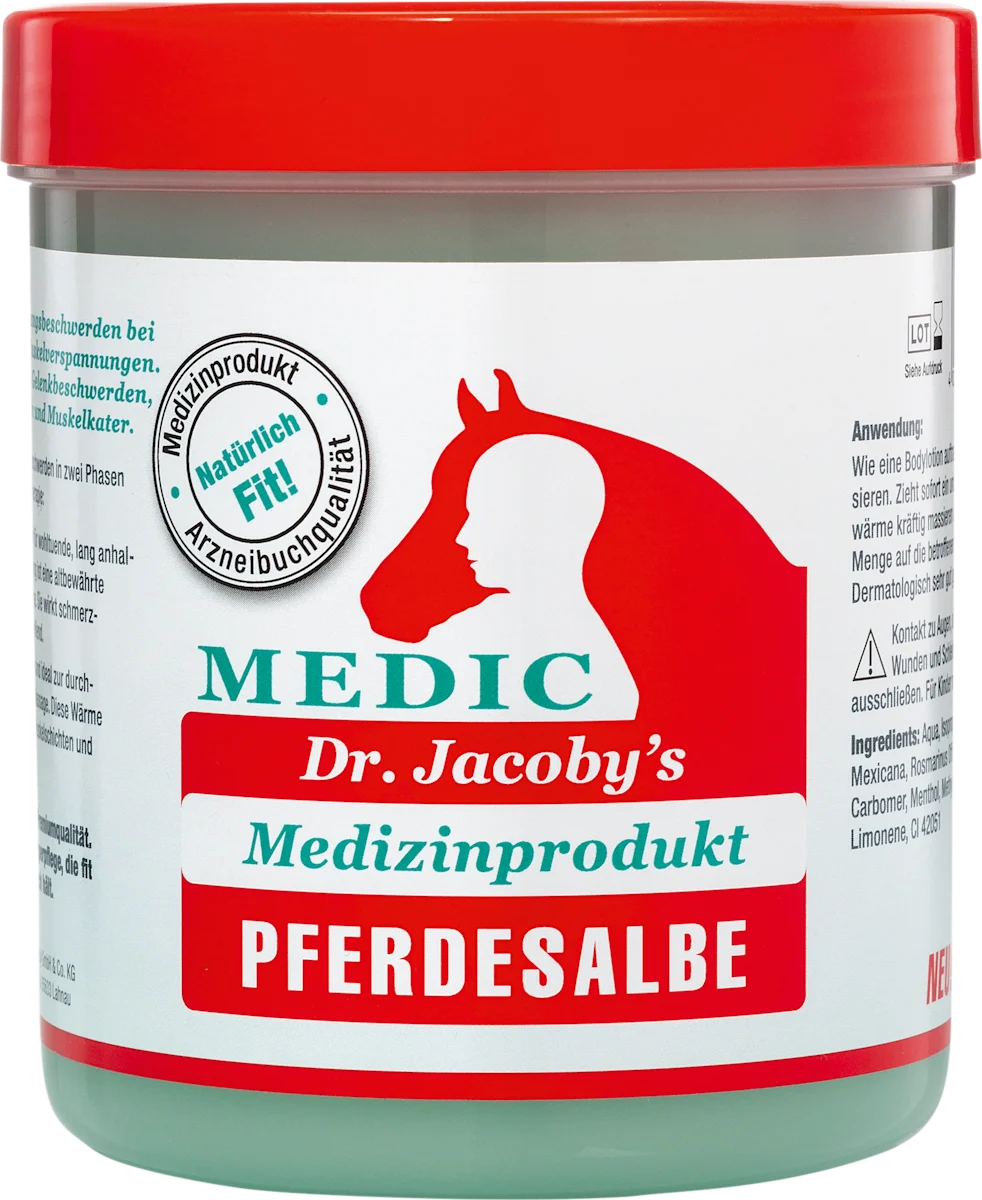 Dr. Jacoby orig. pferdesalbe 600 ml is een spiergel van hoge kwaliteit die speciaal is ontwikkeld voor de verzorging van spieren en gewrichten. Deze originele paardenbalsem biedt verlichting bij vermoeide spieren, stijve gewrichten en spierpijn dankzij het bekende koud-warm effect dat in twee fasen werkt. Het is ideaal voor gebruik na het sporten, lichamelijke inspanning of een lange werkdag.