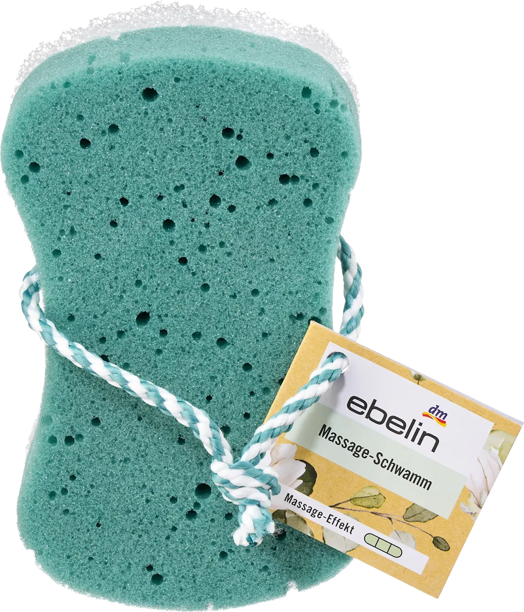 ebelin is een geliefd huismerk van dm‑drogerie markt dat staat voor kwalitatieve verzorgingsproducten tegen een betaalbare prijs. De peeling‑ en massage‑spons is een eenvoudig maar effectief hulpmiddel om je huid extra aandacht te geven — ideaal in combinatie met je favoriete douchegel of zeep.