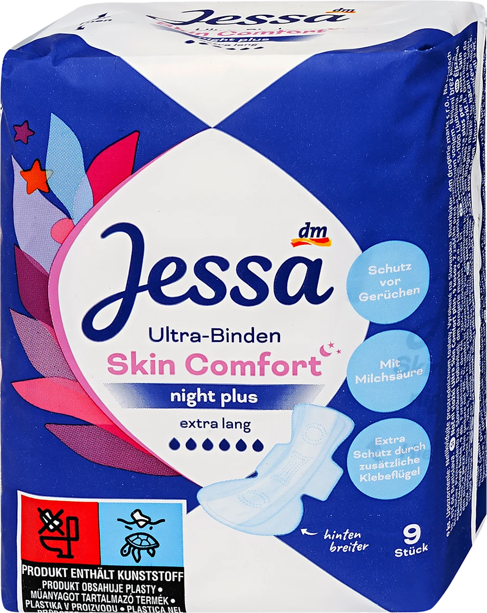 Jessa is het huismerk van de Duitse voordeeldrogist DM, geliefd om zijn kwalitatieve en betaalbare producten. Dit maandverband combineert betrouwbare bescherming met een huidvriendelijk ontwerp en is geschikt voor dagelijks gebruik tijdens zware menstruatiedagen of de nacht.
