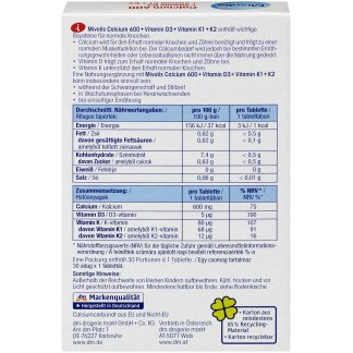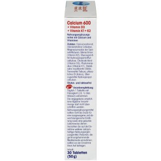 - Productnaam: calcium 600 + vitamine D3, K1, K2