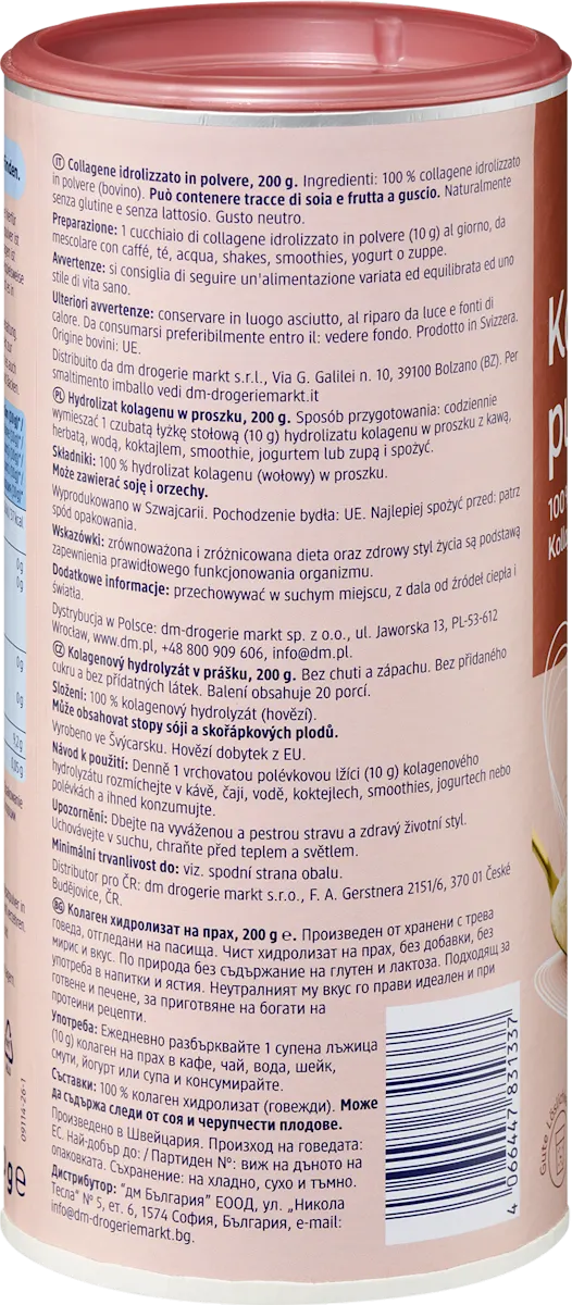 Neem dagelijks één portie (10 g) opgelost in 100 ml water of een andere drank. Een verpakking bevat 20 porties, voldoende voor een hele maand ondersteuning van jouw huid en gewrichten.