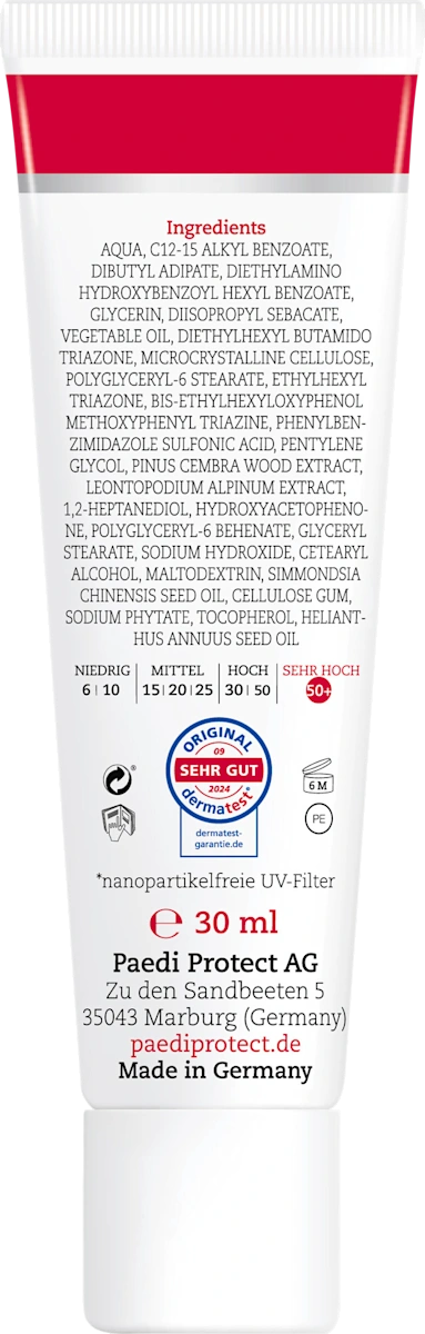 Pädiprotect zonnecrème alpin met koudebescherming SPF 50 30 ml is speciaal ontwikkeld voor zonbescherming onder intensieve omstandigheden, zoals in de bergen of tijdens wintersportactiviteiten. Deze zonnecrème is ontworpen voor gebruik bij sterke zonnestraling in combinatie met kou en wind.