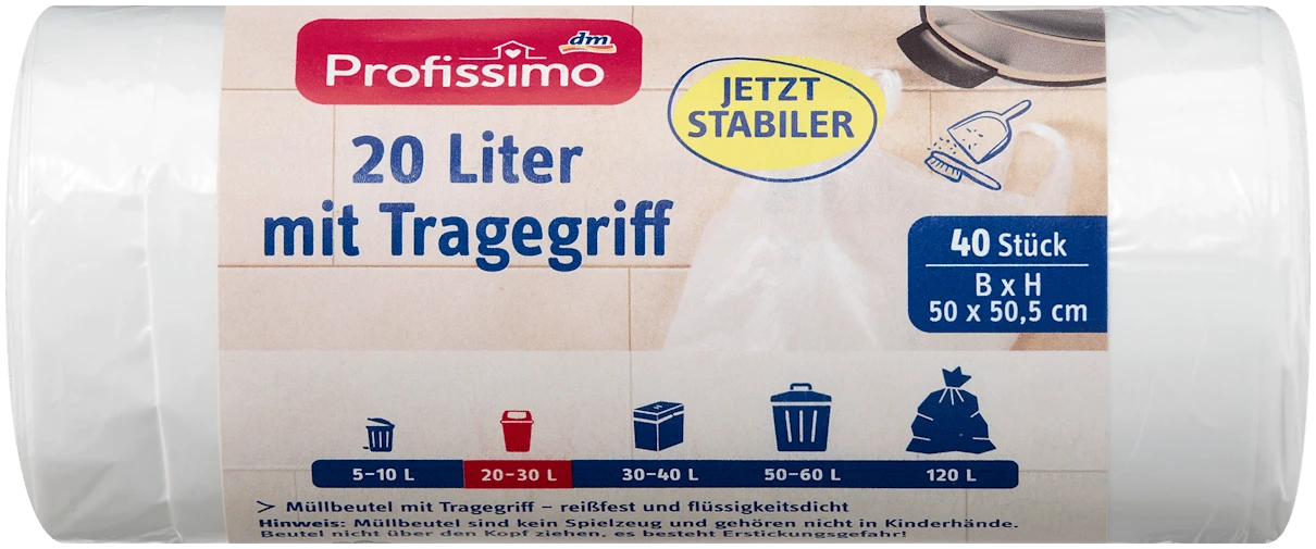 De Profissimo afvalzakken van 20 liter zijn perfect voor het opruimen van afval in en om het huis. Deze zakken zijn uitgerust met handvatten, waardoor ze gemakkelijk te dragen en te legen zijn. Met een verpakking van 40 stuks ben je verzekerd van voldoende voorraad voor al je afvalbehoeften.