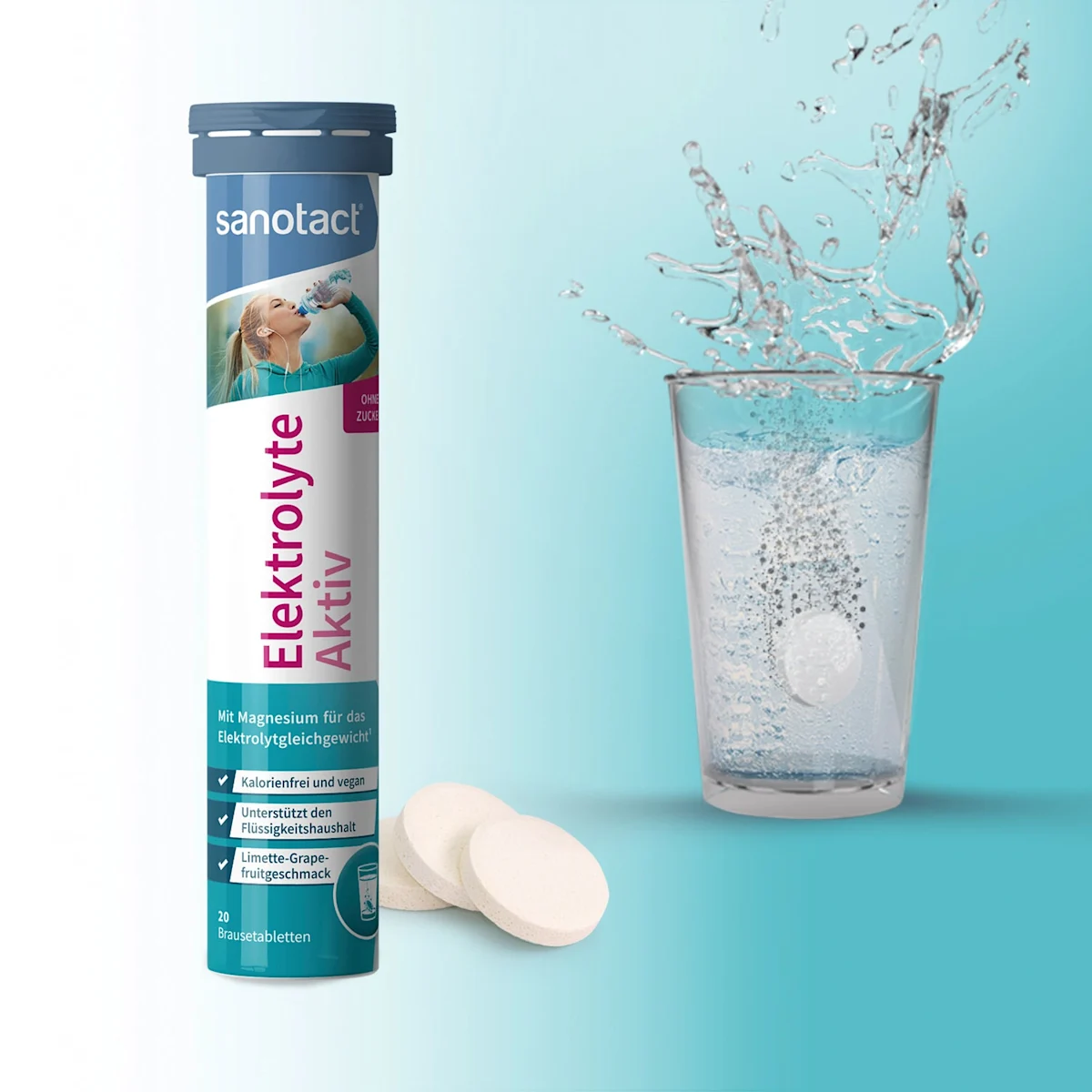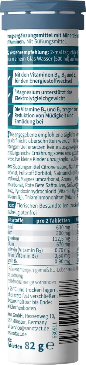 Sanotact Elektrolyte Aktiv Brausetabletten zijn speciaal ontwikkeld om het lichaam snel en effectief te voorzien van belangrijke elektrolyten. Bij overmatig zweten door hitte intensieve lichamelijke inspanning of bij verlies van vocht door ziekte kan het elektrolytenevenwicht verstoord raken. Deze bruistabletten bevatten een uitgebalanceerde combinatie van natrium kalium calcium magnesium en chloride die de natuurlijke vochtbalans helpen herstellen.