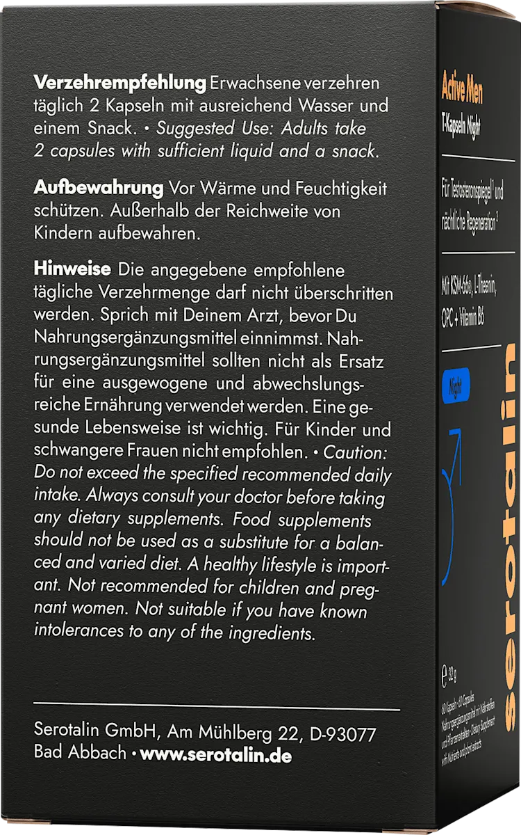 Het is speciaal ontwikkeld voor mannen ter ondersteuning van slaapkwaliteit, ontspanning, en het behoud van een gezond testosteronniveau.