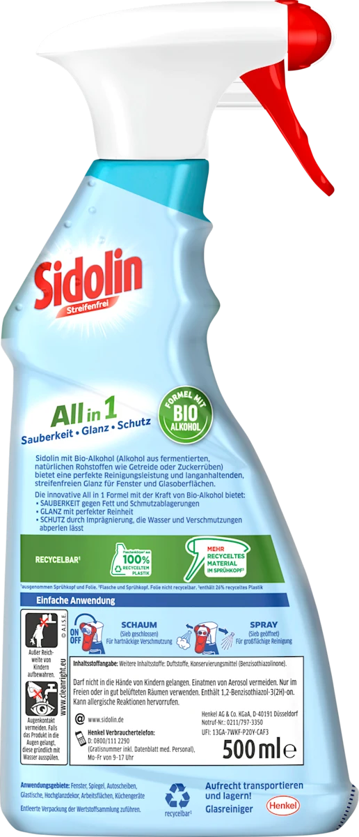 Sidolin Glasreiniger Cristal 3in1 500 mlSidolin Glasreiniger Cristal 3in1 500 ml